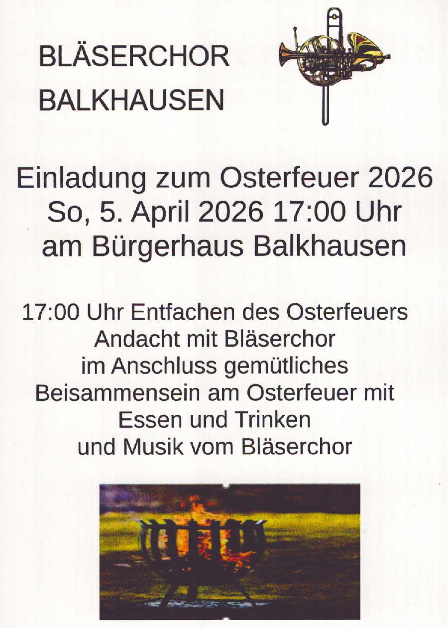 29.03.26 : Einladung zum Osterfeuer 05.04.26 : Rückblick auf das Osterfeuer des Bläserchors